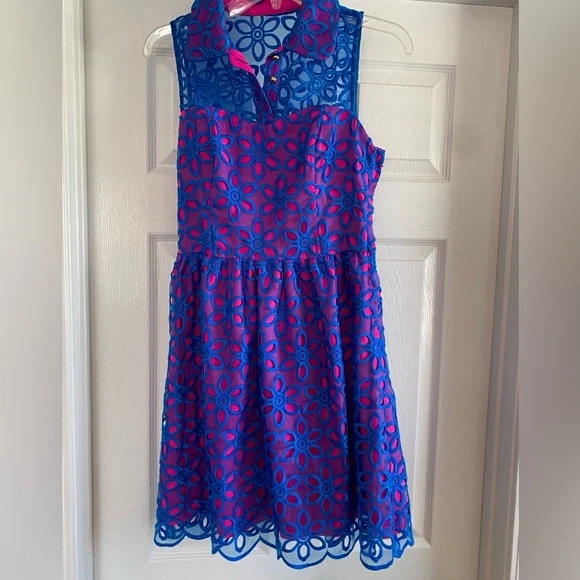 Lilly Pulitzer Dresses Lilly Pulitzer Size Hot Pink Underlay With Royal Blue Flower Detail Over Top Poshmark